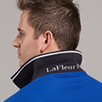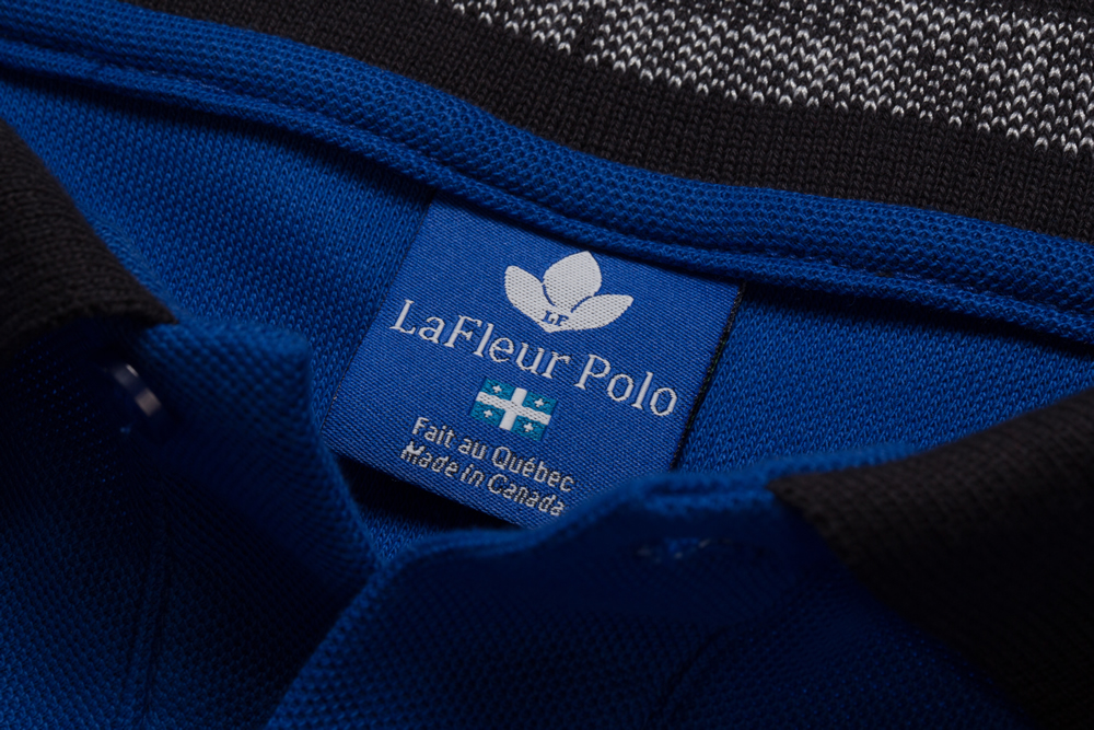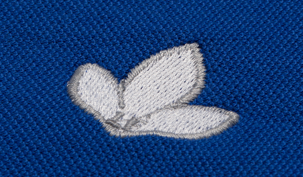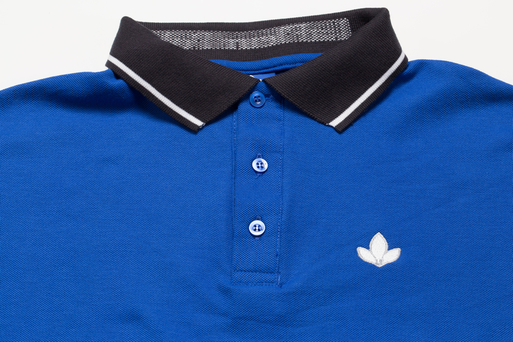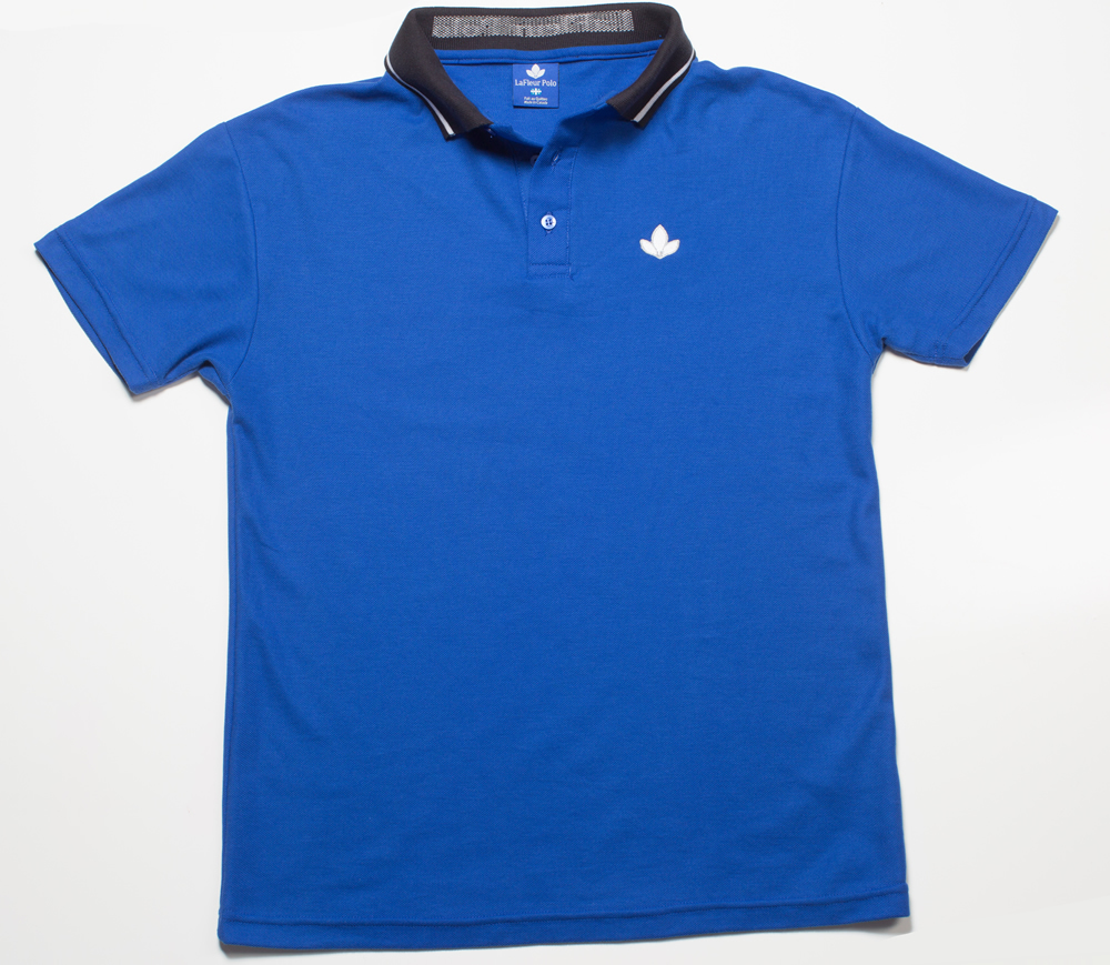 Bleu officiel du drapeau Fleurdelisé. Col bleu marine avec liseré blanc.